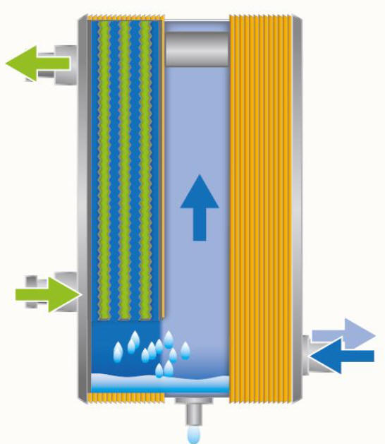 - Luftkühler und Wasserabscheider im Wärmetauscher integriert